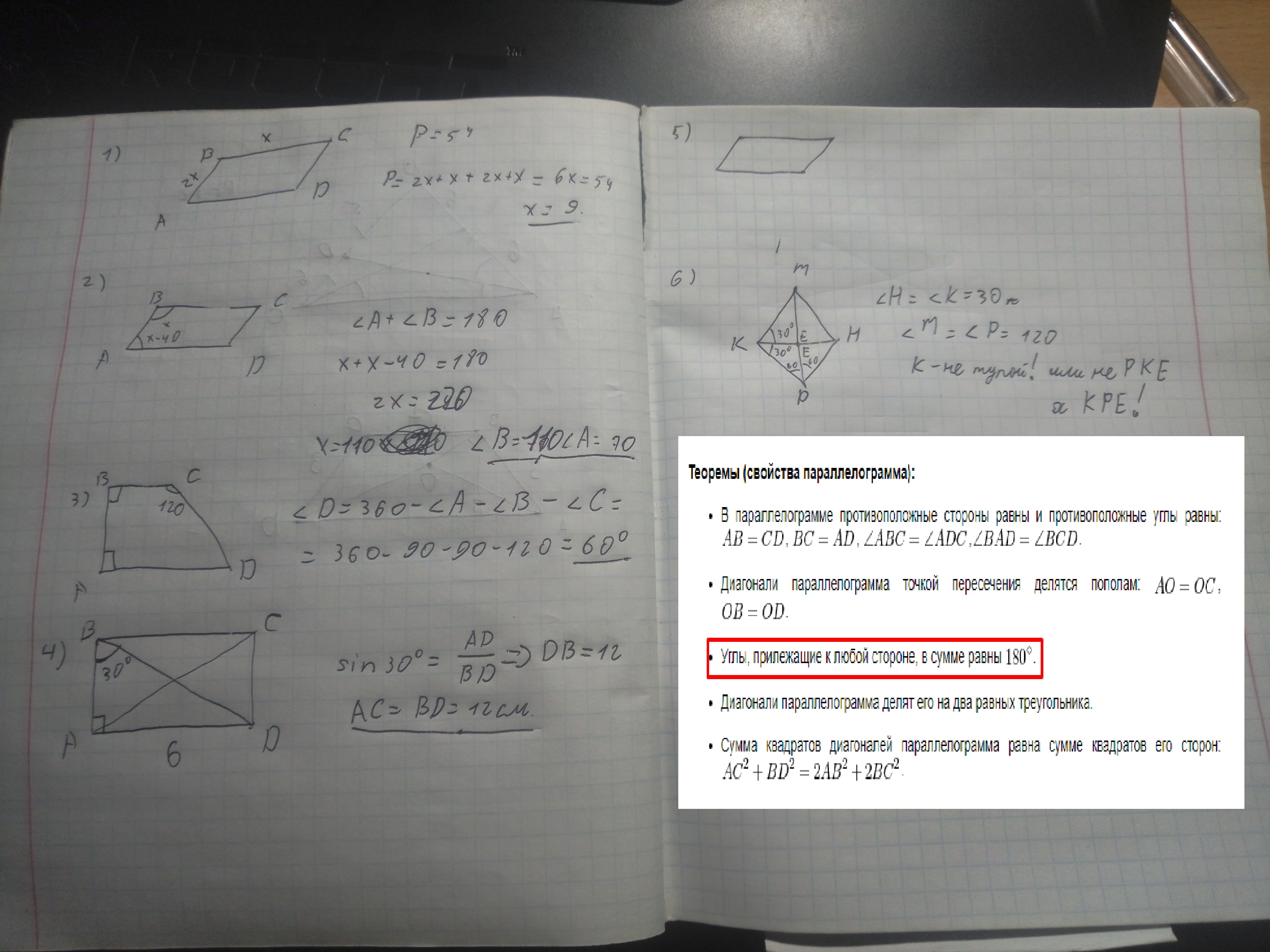 5.Теоремы (свойства параллелограмма):