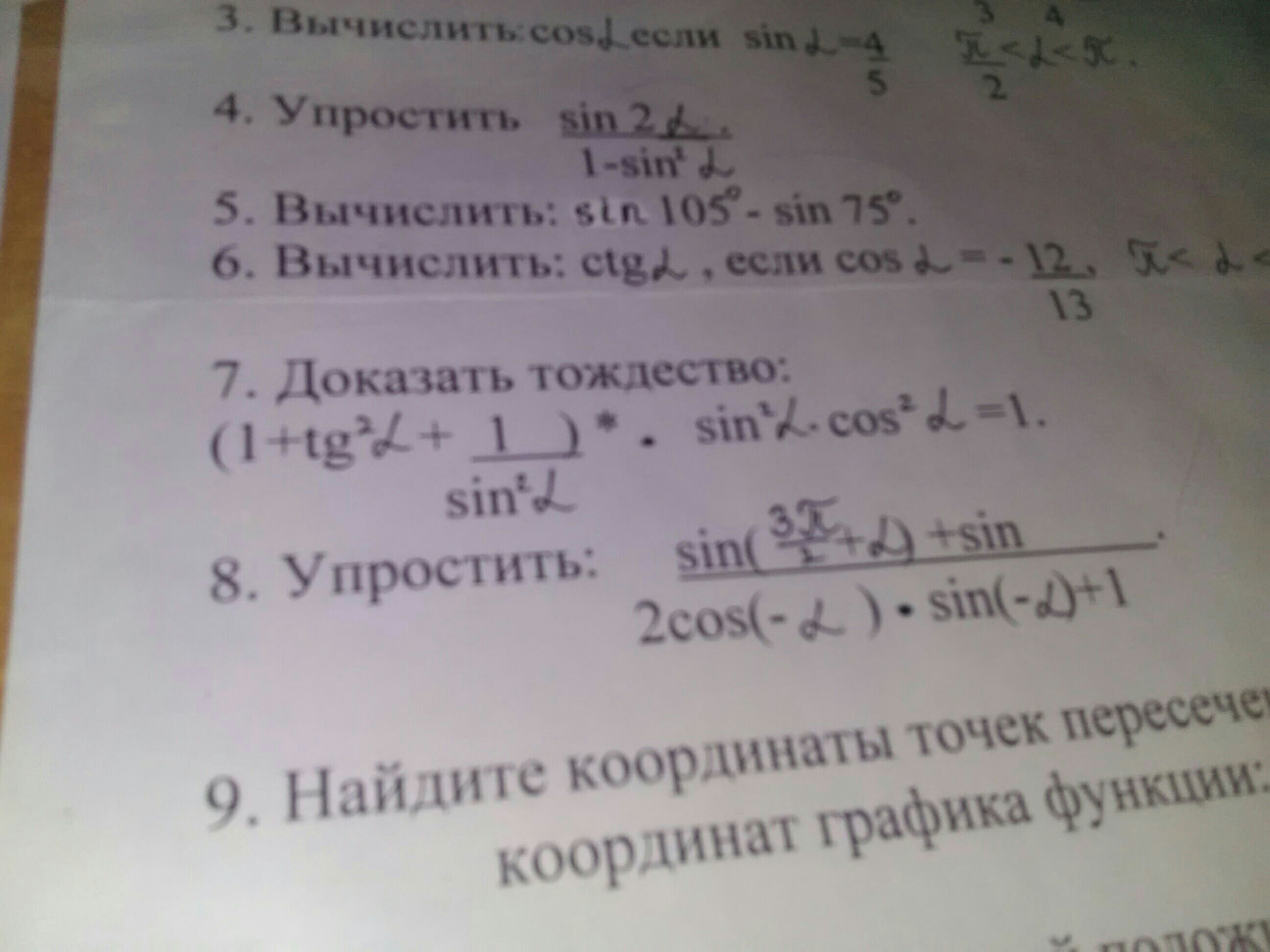 7) (1 + tg²α + 1/sin²α) * sin²α*cos²α = 1