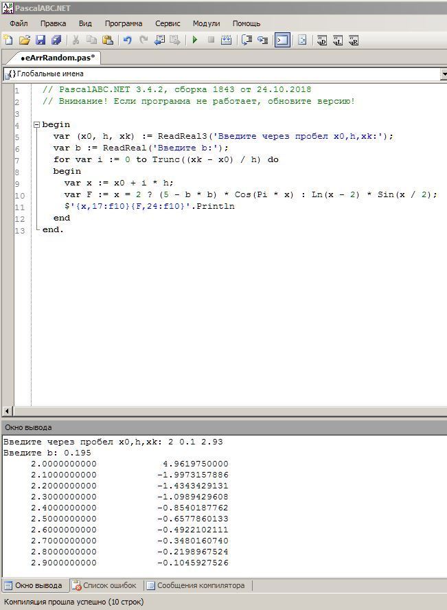 var (x0, h, xk) := ReadReal3('Введите через пробел x0,h,xk:');