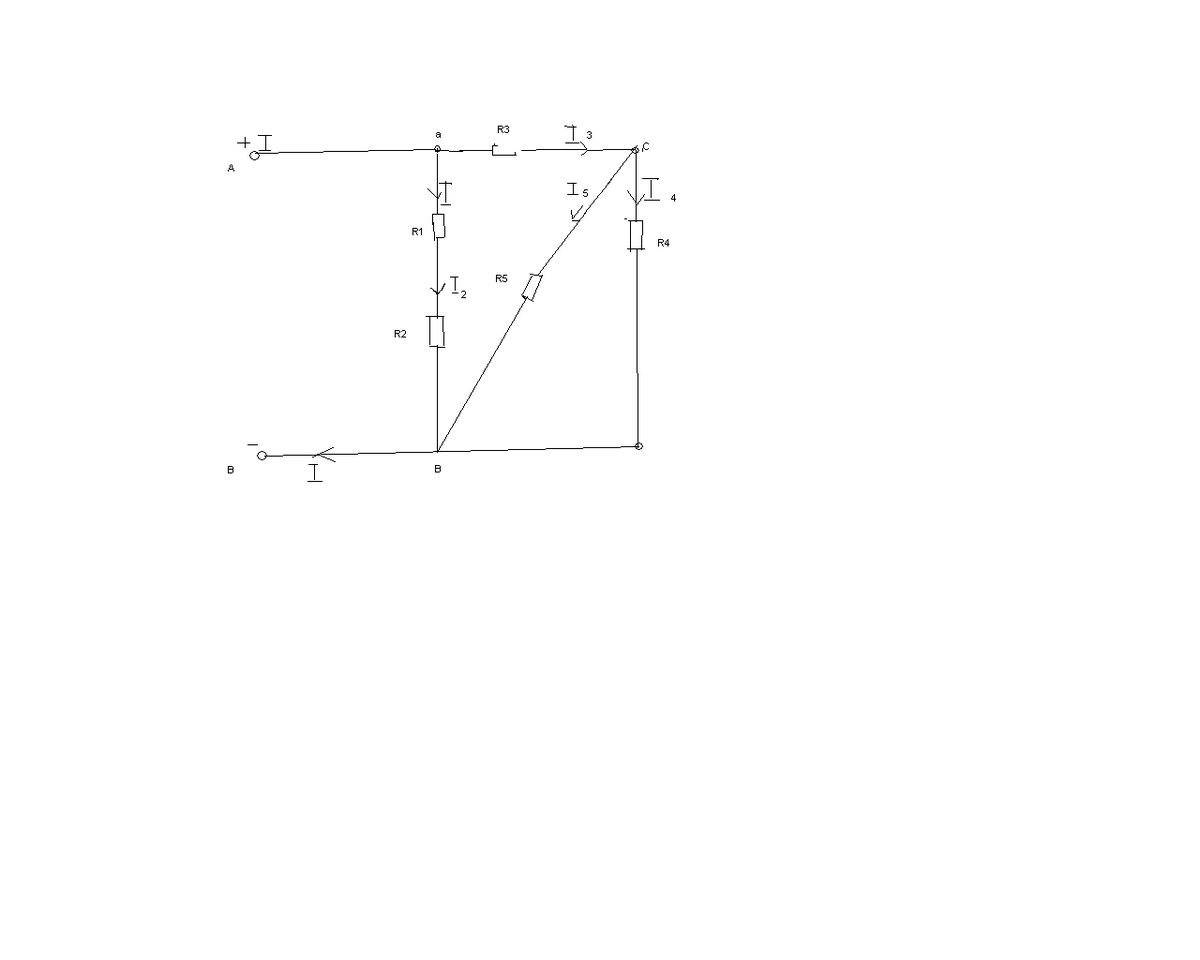 определить токи на всех участках цепи,если Pab=48вт,R1=3ом,R2=1ом,R3=8ом,R4=20ом,R5=5ом