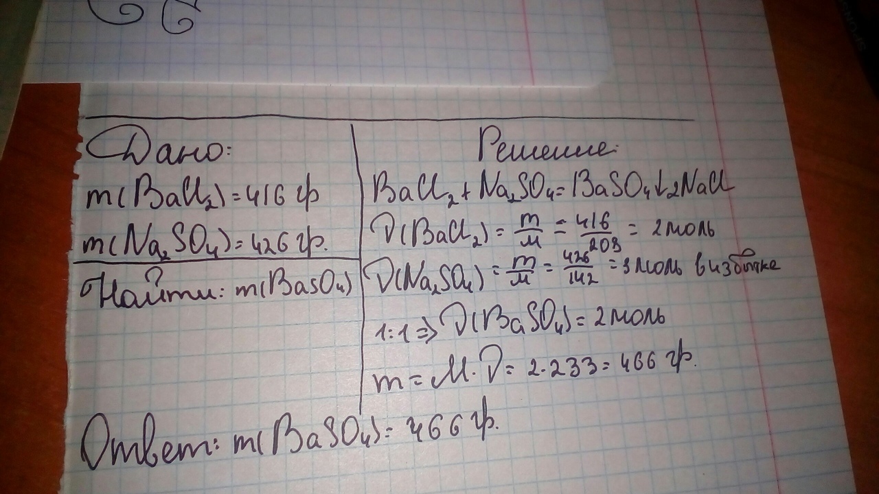смешали два раствора содержаших соответственно хлорид бария массой 416 г и сульфит натрия массой 426 г расчитайте массу образовавшегося осадкаю