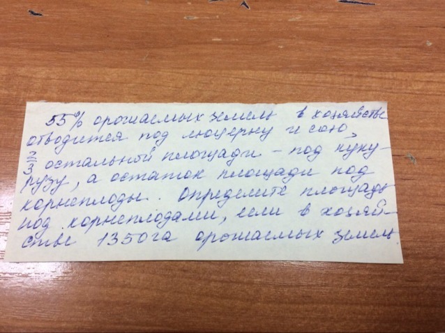 1) 1350÷100×55=742,5(га) - отводится под люцерну и сою.