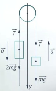 2mg(модуль) + Т(модуль) = 2ma(модуль)