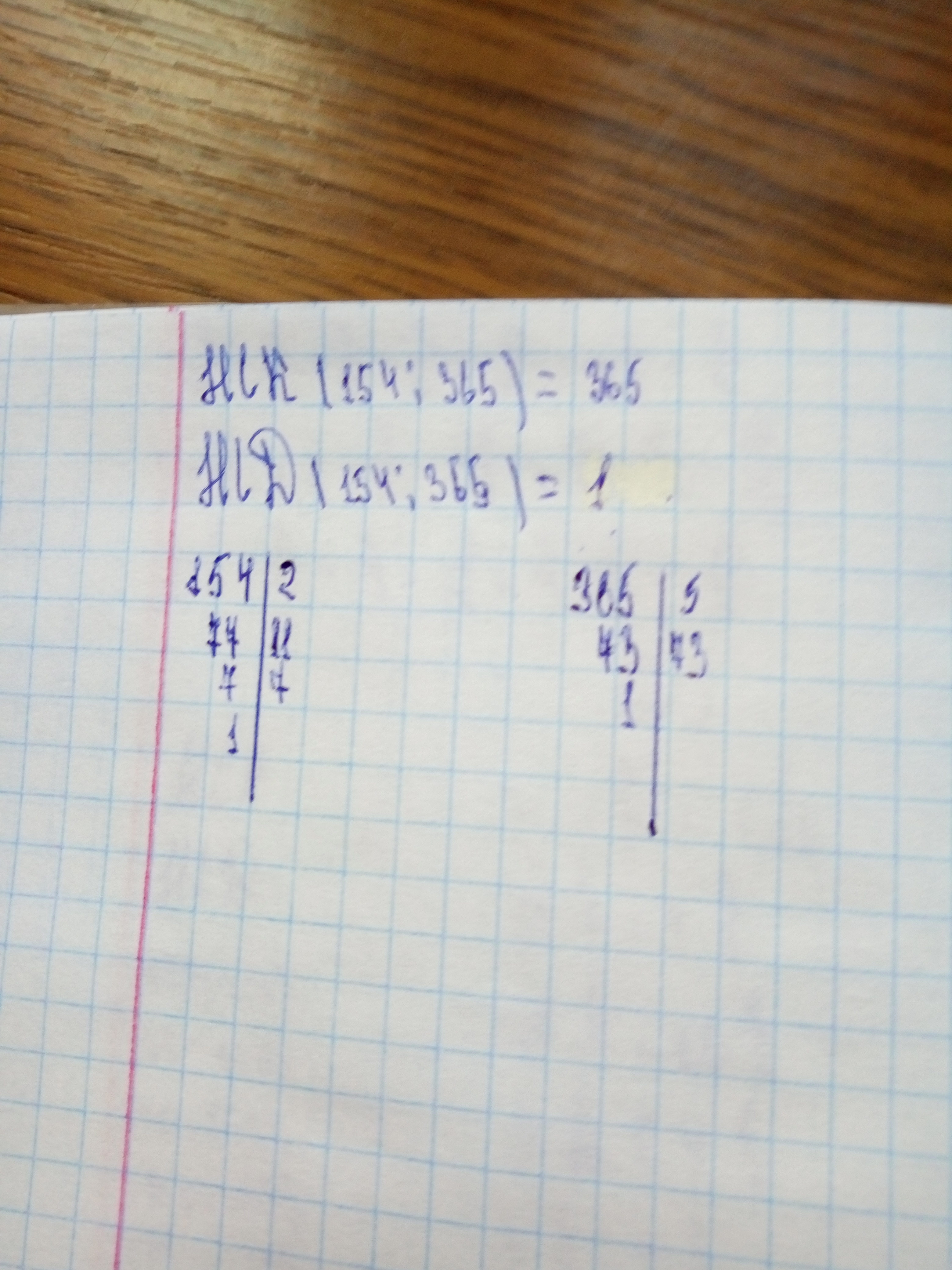 НОК (154 и 365) = 154 · 365 = 56210 - наименьшее общее кратное.