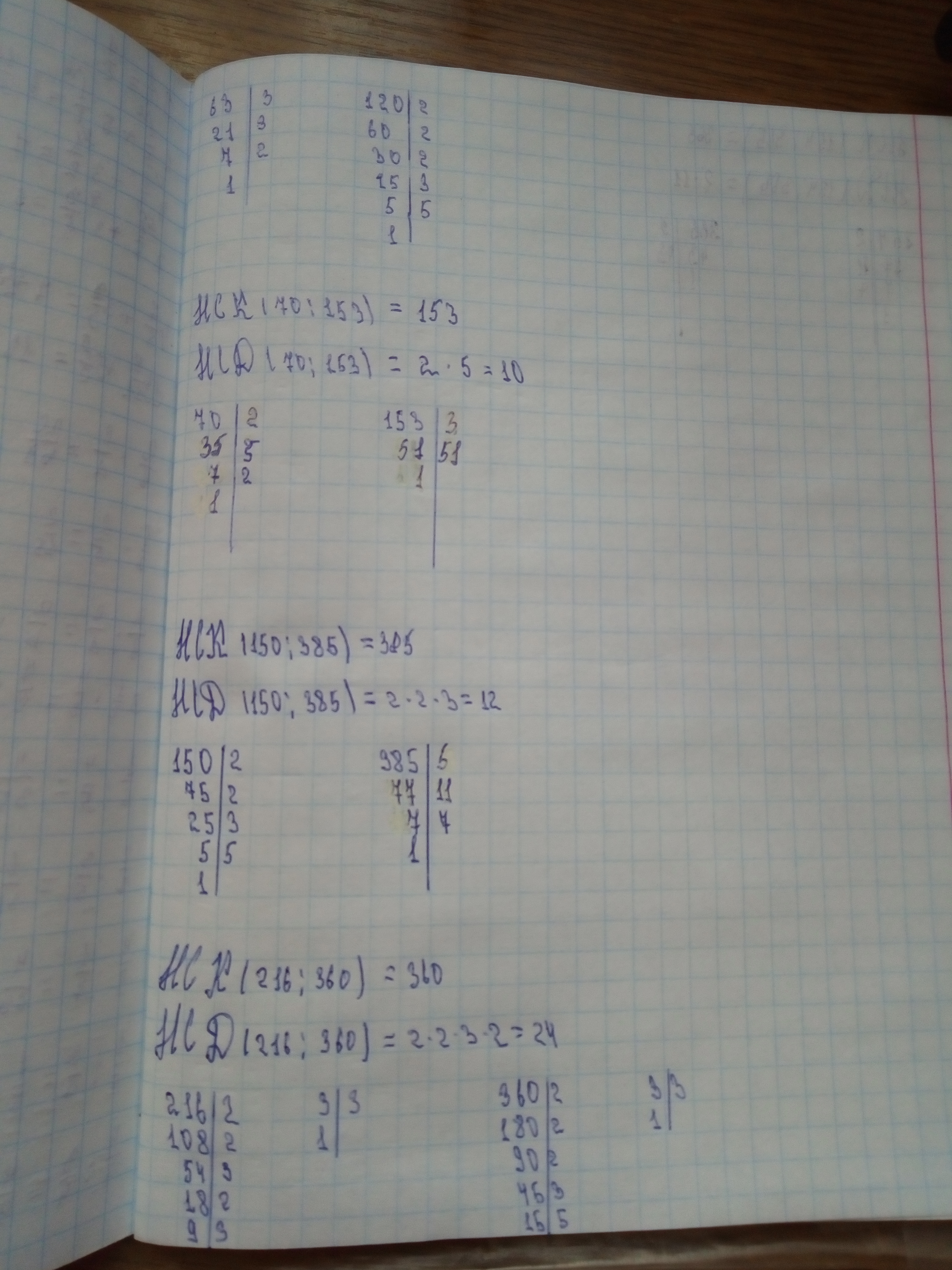 216 = 2³ · 3³; 360 = 2³ · 3² · 5