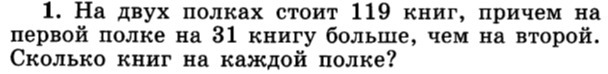 Ответ : На первой полке 44 книг, а на второй 75 книг.