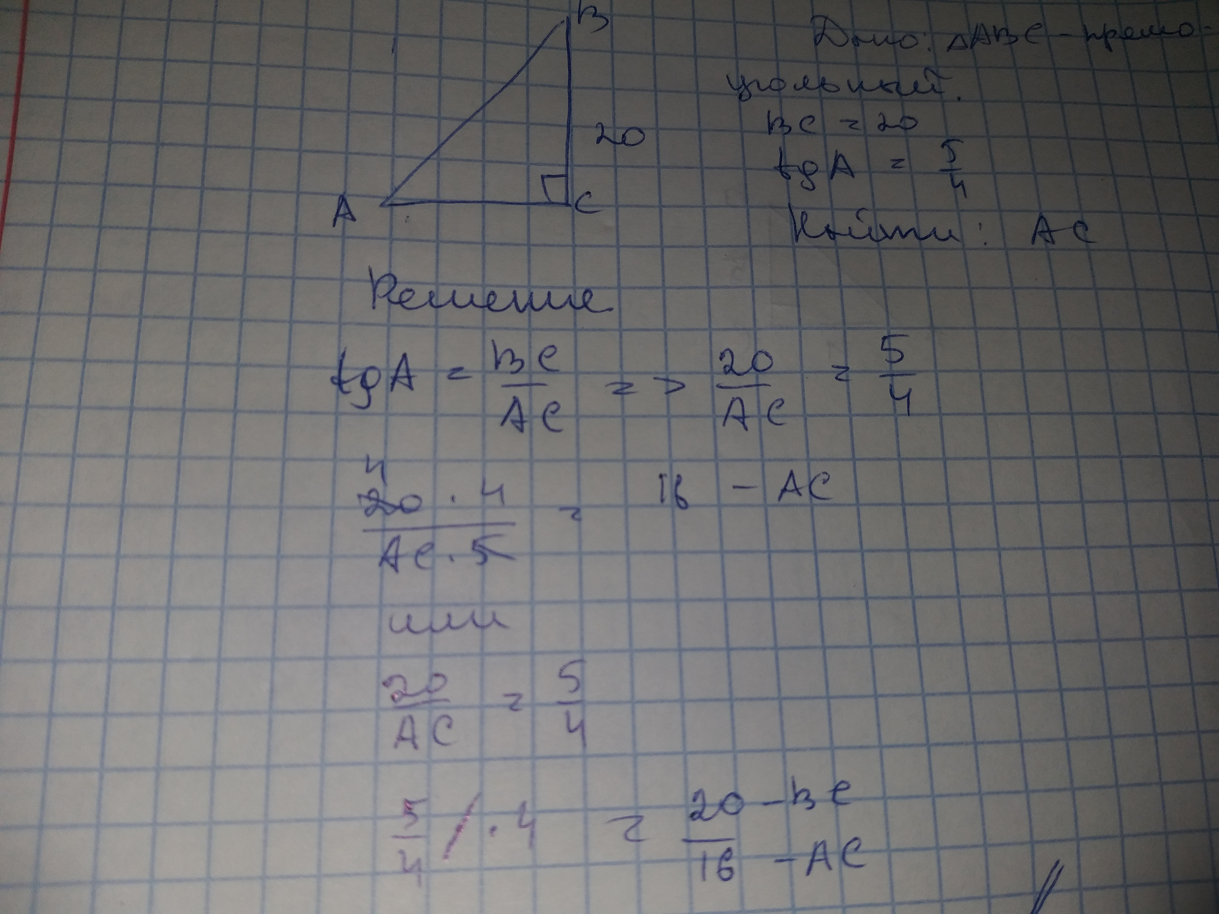 Tg является отношением противолежащего катета к прилежащему катету.