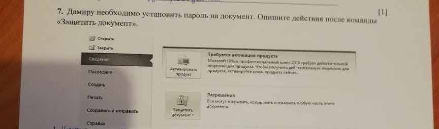 Защитить документ паролем-ввести пароль- подтвердить пароль