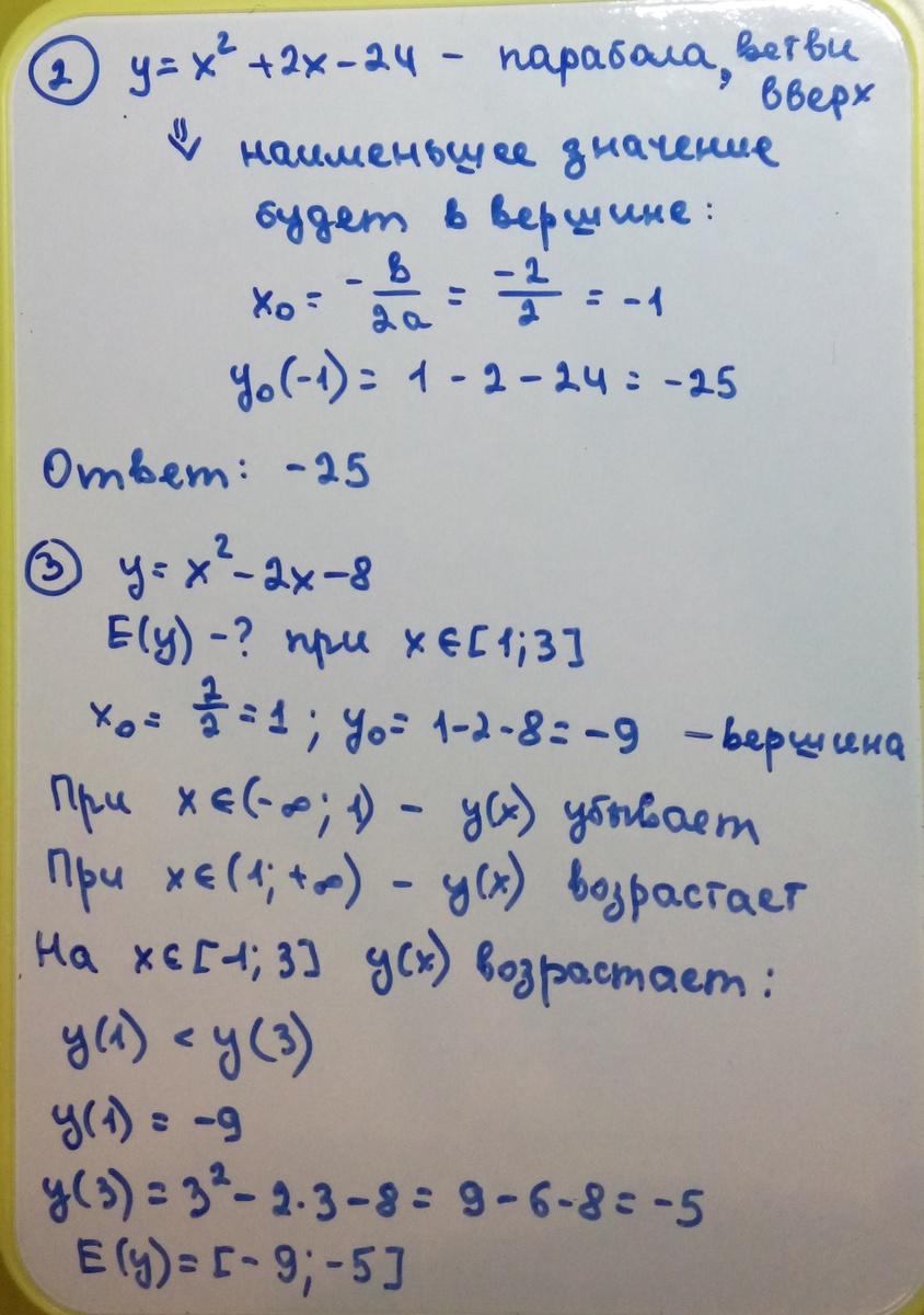 2) у= х^2+2x-24 найти наименьшее значение функции