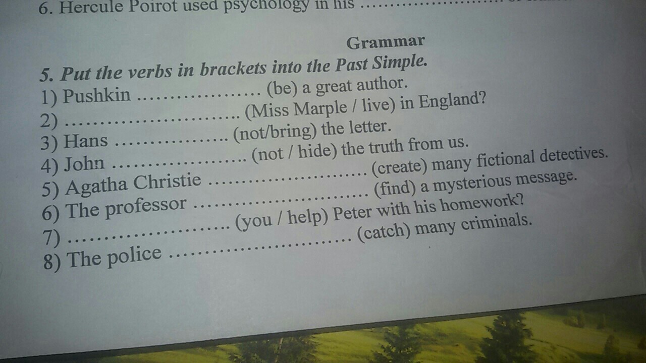 1)was, 2)Did miss Marble live in England 3)didn't bring 4)didn't hide 5)created 6) found 7)Did you help 8)caught