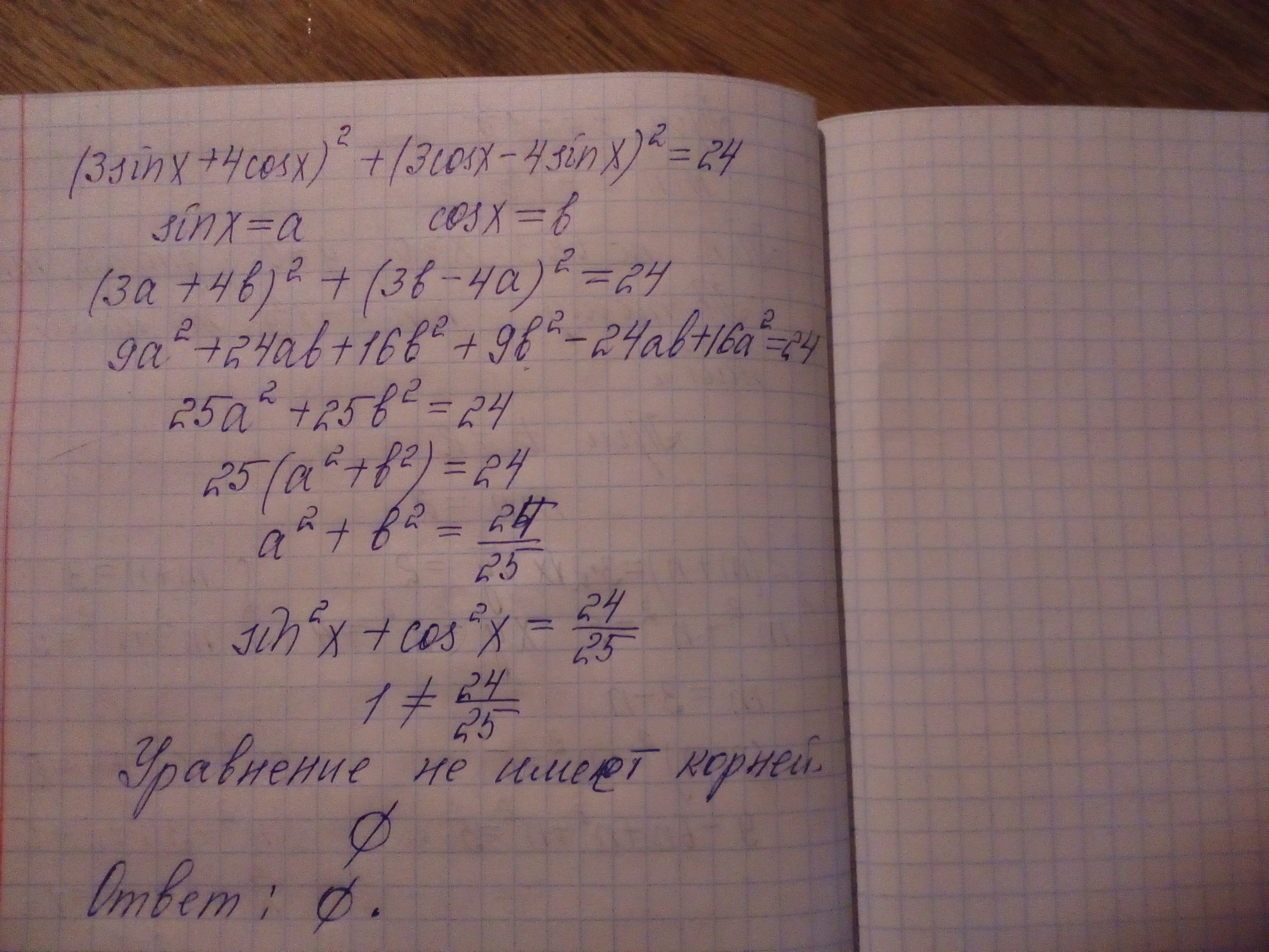 (3sin x + 4cos x)^2 + (3cos x - 4sin x)^2 =24
