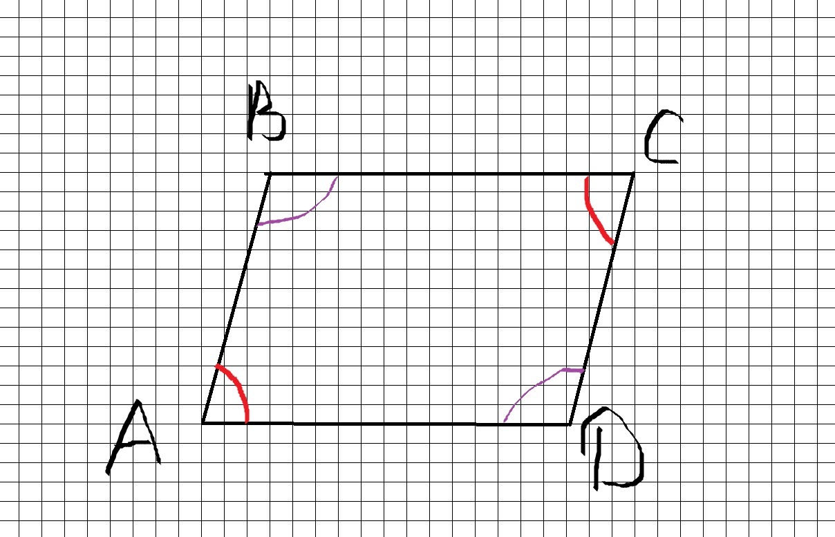 ∠A+∠B=180° и ∠C+∠D=180° , так как эти углы односторонние.