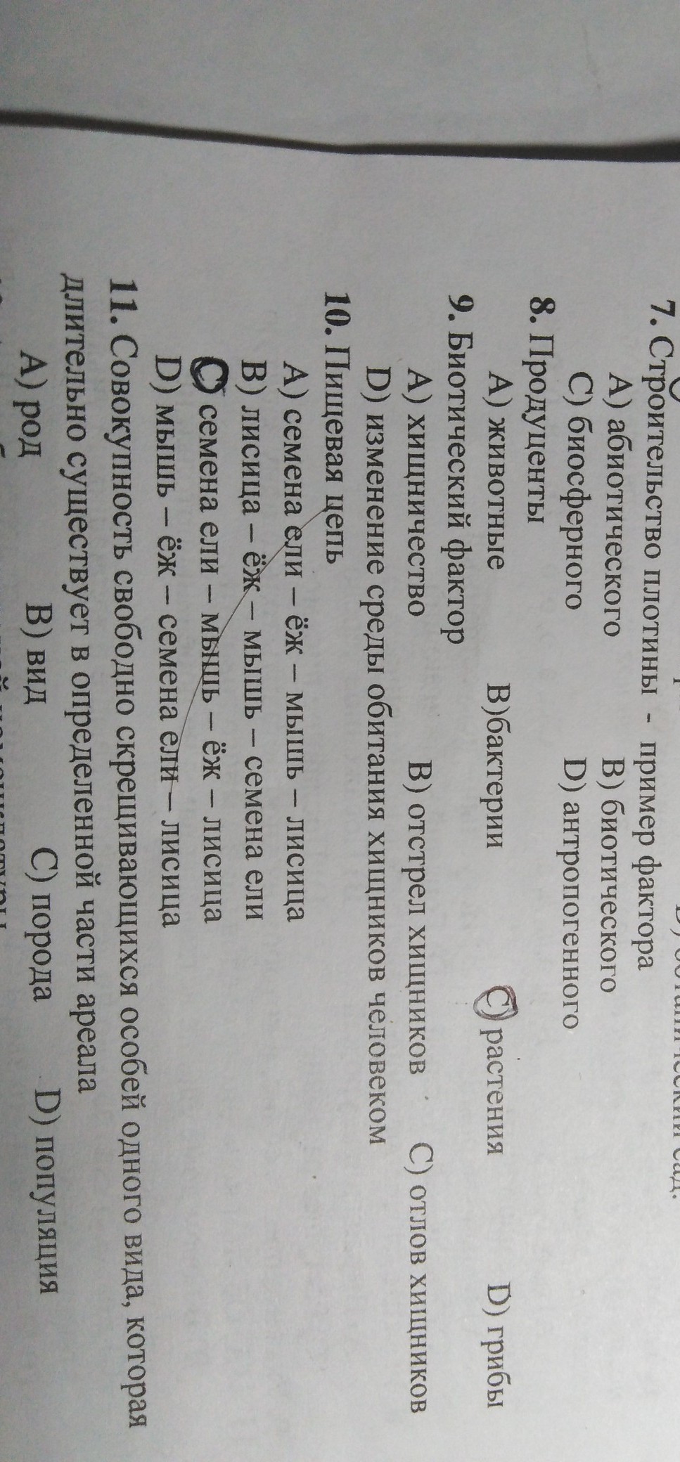 7. Если плотину строят бобры - то это биотический фактор ответ В)