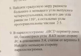 Видим, что в четырехугольнике больший угол 110°, а меньший 40°. Разность 110-40=70°.