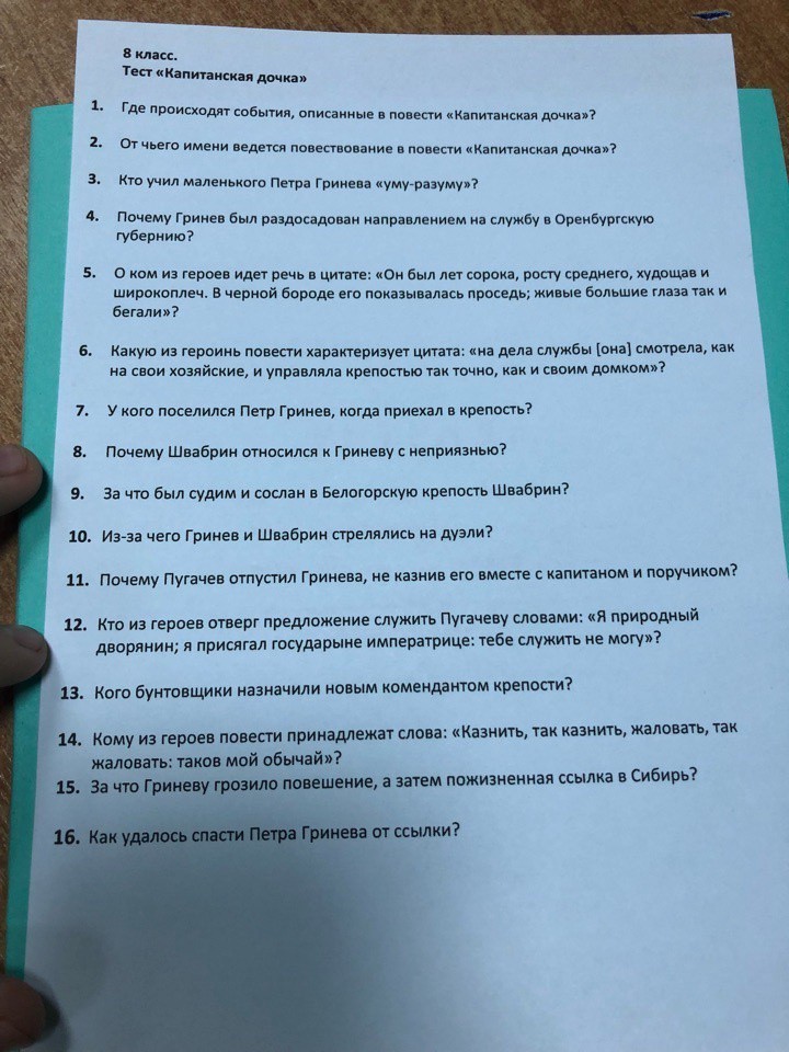 15) Гринёва арестовали и пожизненно сослали в ссылку. А произошло это потому, что Швабрин из злости, ненависти и зависти донёс на Гринёва, как на пособника самозванца и бунтовщика Пугачёва.