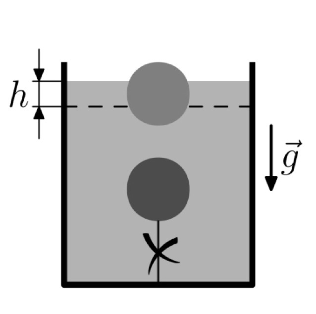 Деревянный шар объёма V привязан нитью ко дну сосуда цилиндрической формы с сечением S и полностью погружён в воду. Когда нить перерезают, шар всплывает, а уровень воды в сосуде опускается на h. Какова масса шара?