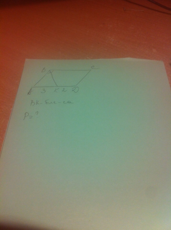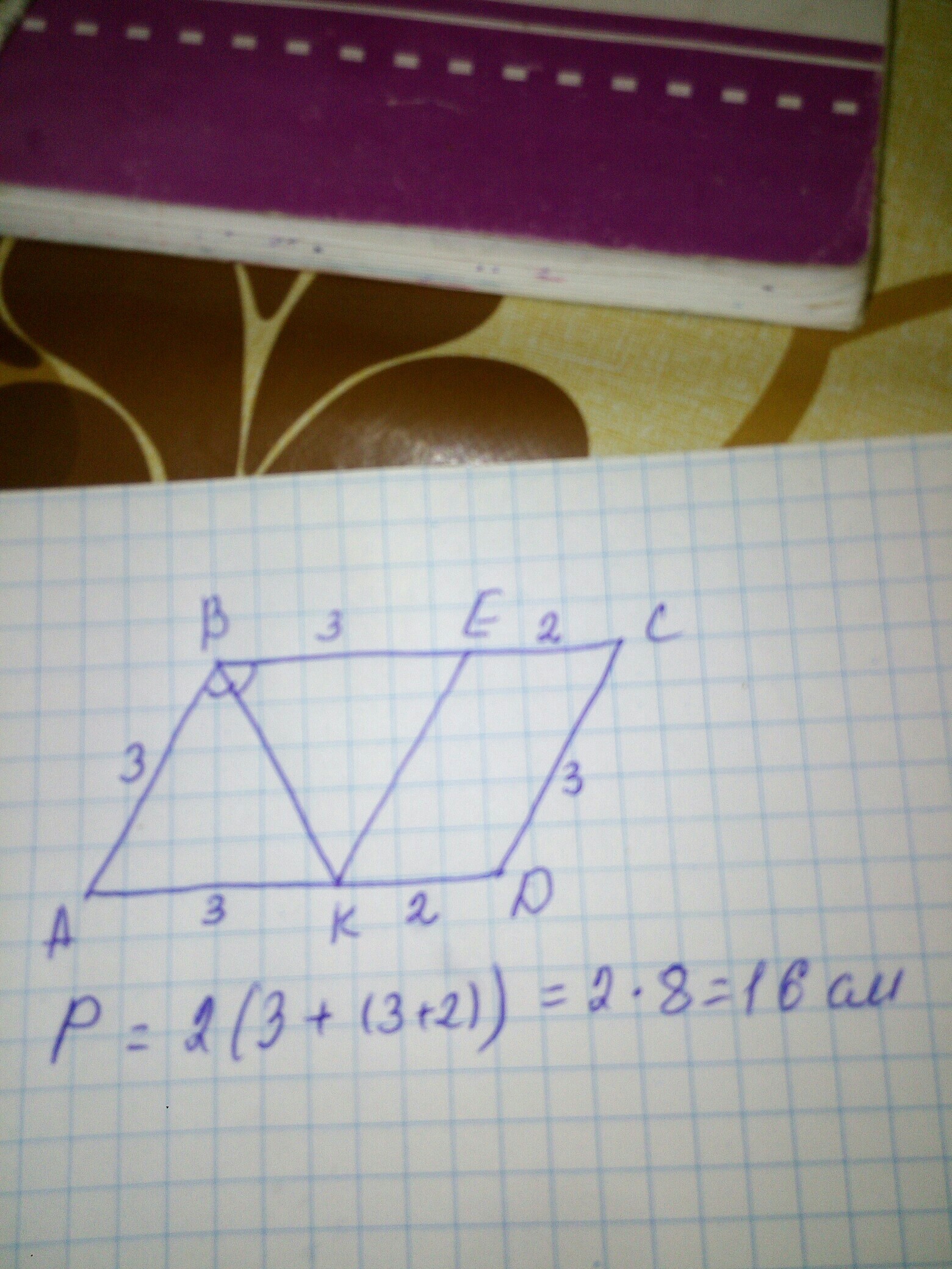 проведем из точки K паралельную BC, ,и отметим точку сечения с BC буквой E. получим ABEK квадрат. следовательно BE= AB=DC=3. P=2*(3+3+2)=16