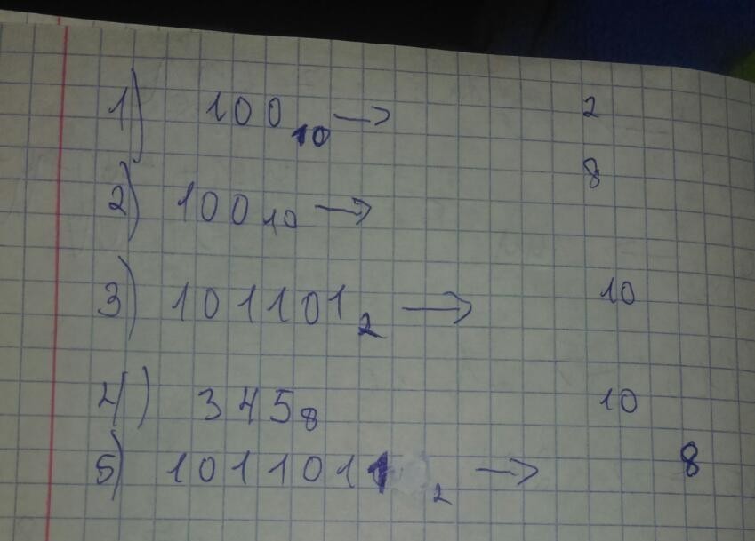 4) 345 (8) = (3 * 8^2) + (4 * 8^1) + (5 * 8^0) =229 (10)