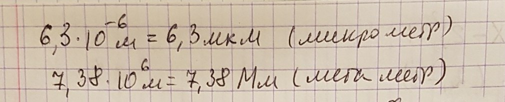 а) 6,3 мкм (микро) в) 7,38 Мм ( мега)