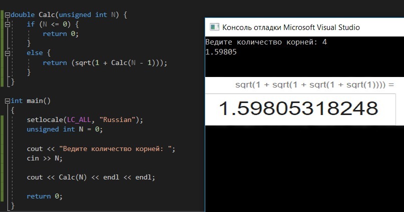 return (sqrt(1 + Calc(N - 1)));