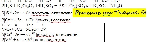 Методом электронного баланса подберите коэффициент в схемах окислительно-восстановительных реакций. б)V2O5+Ca=CaO+V в)H2S+K2CrO7+H2SO4= S+Cr2(So4)3+K2SO4+H2O.