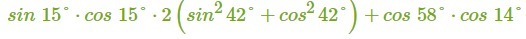 sin15°⋅cos15°⋅2(sin^2 42°+cos^2 42°)+cos58°⋅cos14°=