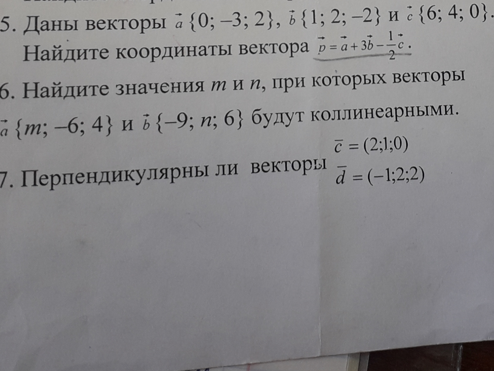 5)p={0;-3;2} + {3;6;-6}- {3;2;0}={0;1;-4}