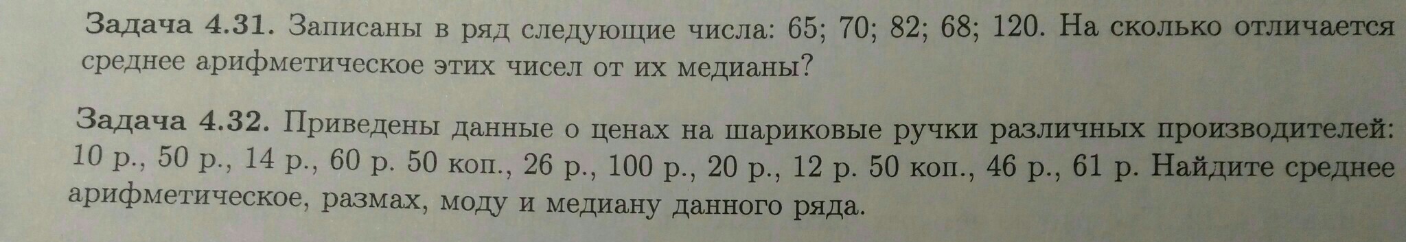 Среднее арифметическое = (62+ 68+ 70+ 82+ 120)/5= 80,4