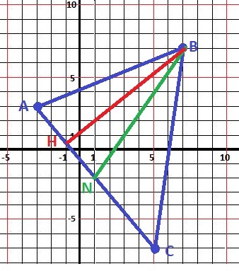 1. нужны уравнения прямых BN - медианы и BH - высоты.