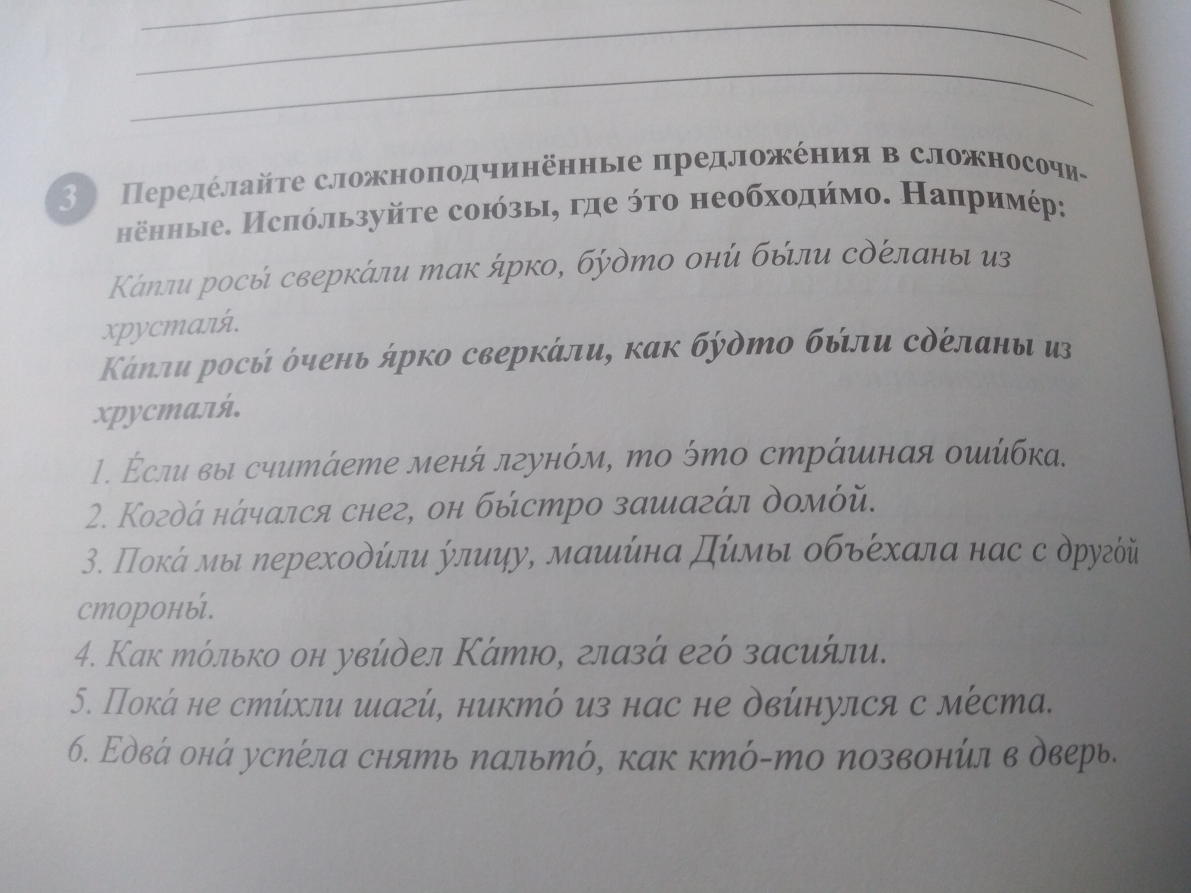 В образце выполнения ошибка: предложение все равно осталось сложноподчиненным.