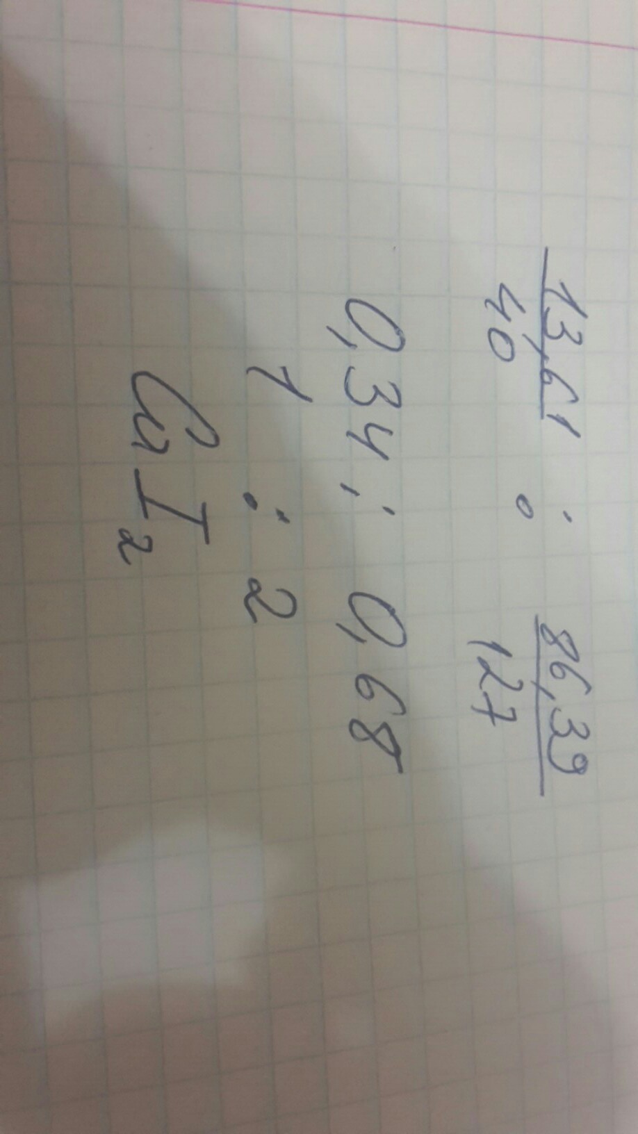 Найдите формулу соединения, если известно, что массовые доли элементов в процентах следующие:кальция-13,61 йода-86,39