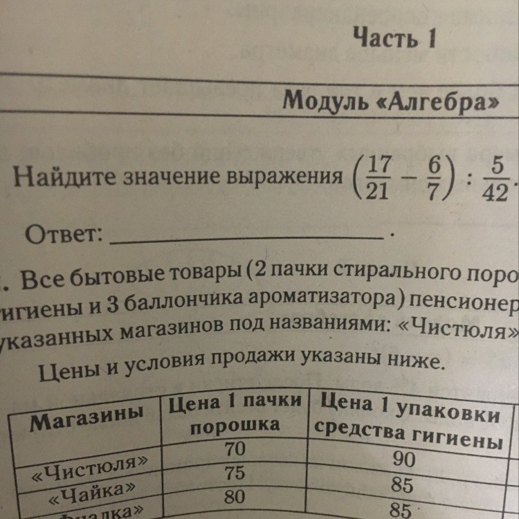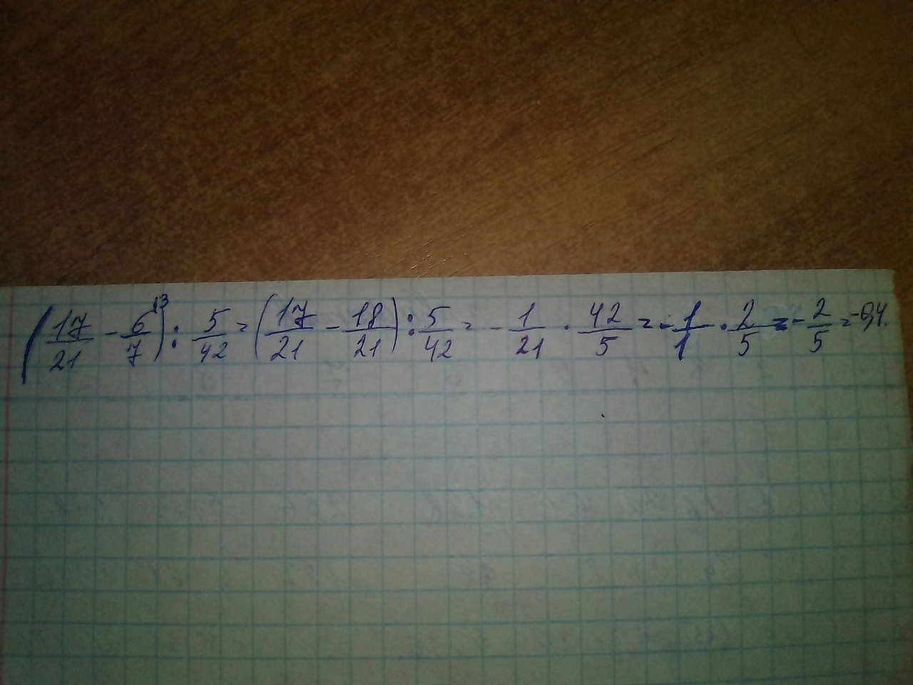 общий знаменатель в скобках приводим(17/21 -18/21)÷5/42