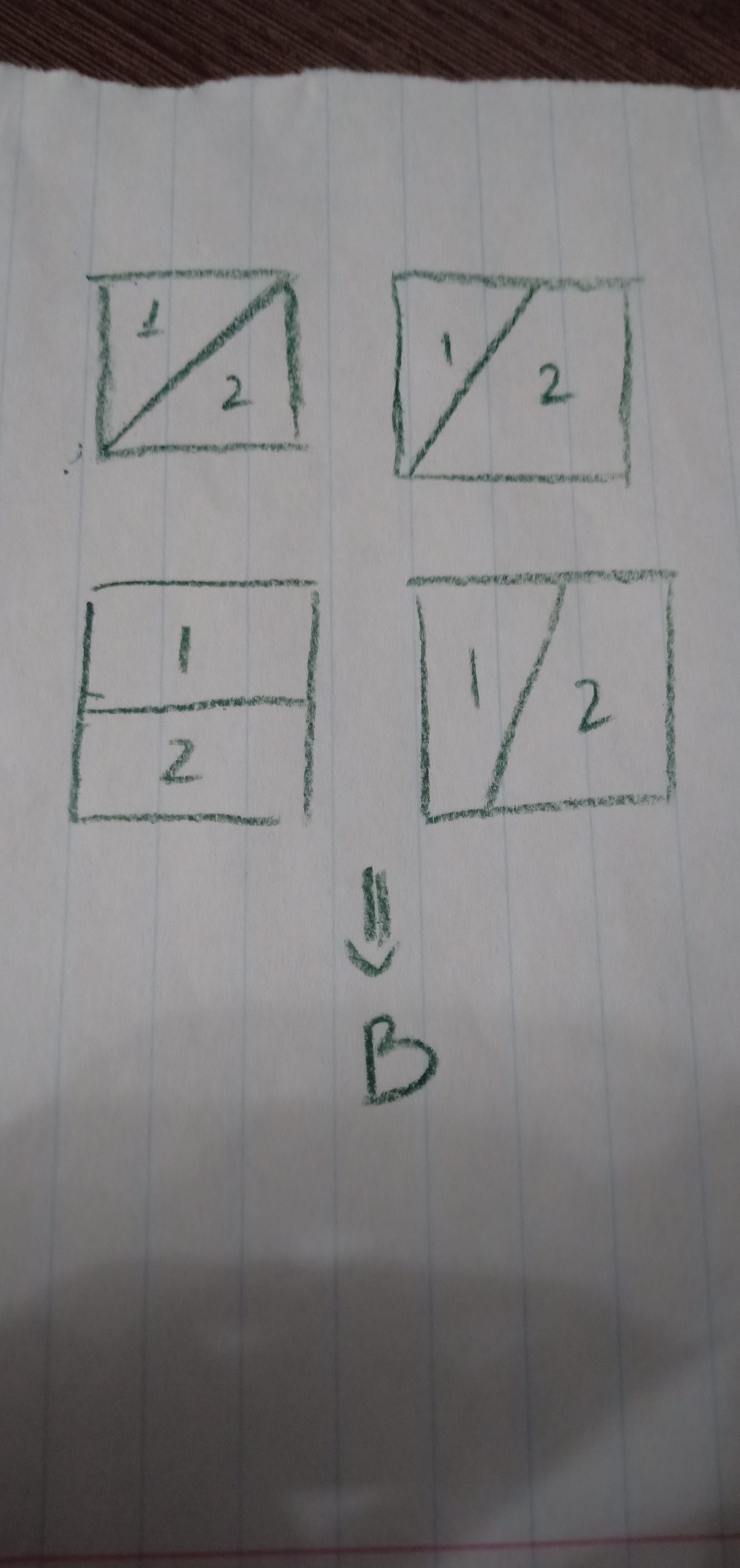 вариант В) , т.к разделив квадрат на две части, нельзя получить две фигуры с одинаковыми противоположными сторонами