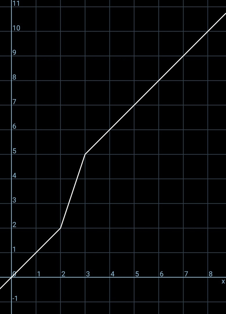 Построим график функции для положительных x. Для этого раскроем модули для разных значений x: