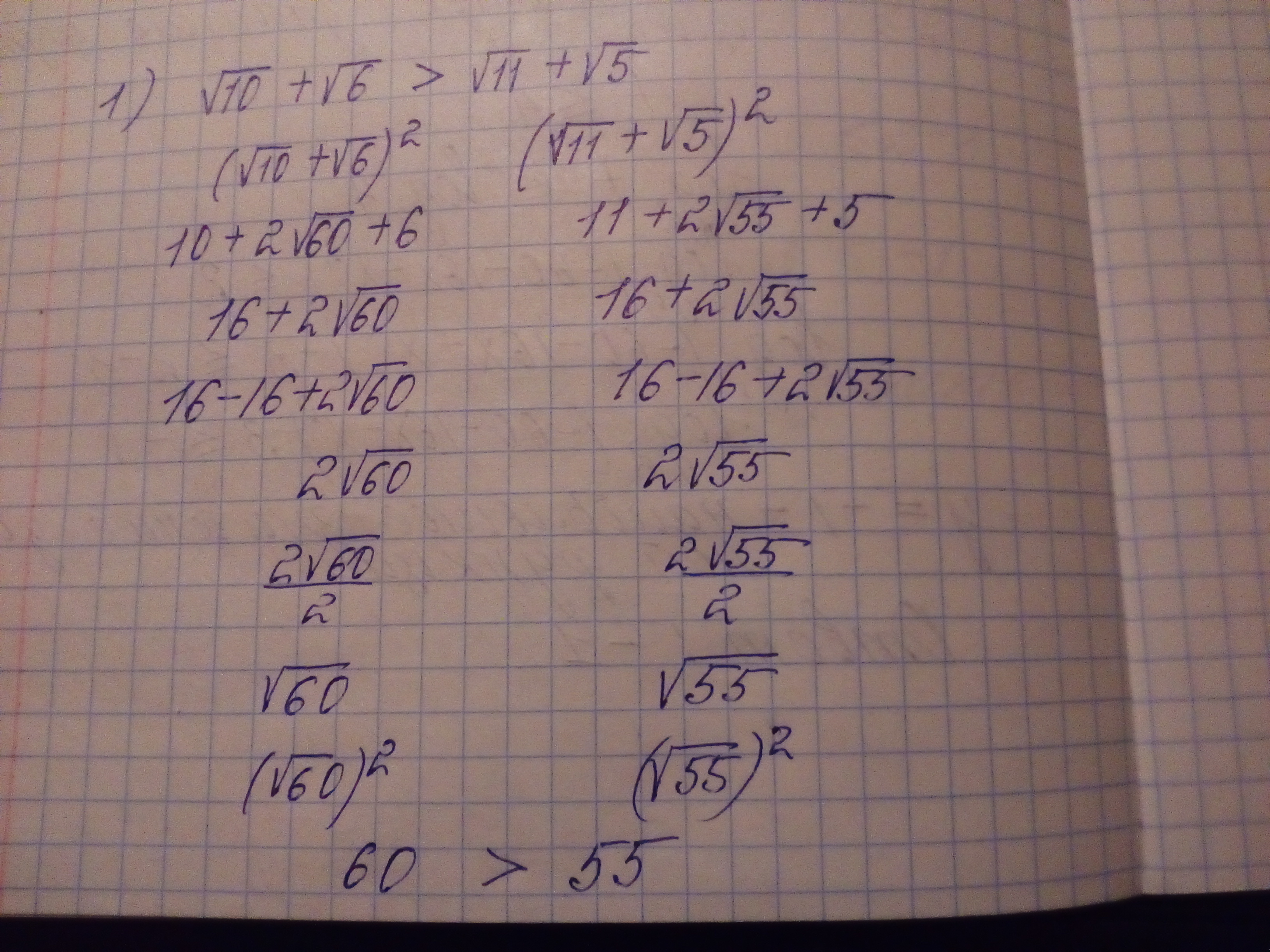 16+2*√60>16+2*√55.