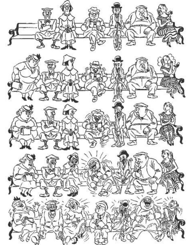 Когда ты начинаешь,что-либо делать. люди не обращают на тебя внимания. но как только ты начинаешь явно показывать свои эмоции, что свидетельствует о том , что в данном деле происходит что-либо интересное, люди начинают интересоваться этим.и вот вокруг тебя уже не 5 человек, а 10. ты начинаешь смеяться, плакать или грустить, и людям интересно,что происходит. и когда ты настолько ярко показываешь свои эмоции, что они видны и слышны всем, все сначала не понимают, а потом начинают их показывать