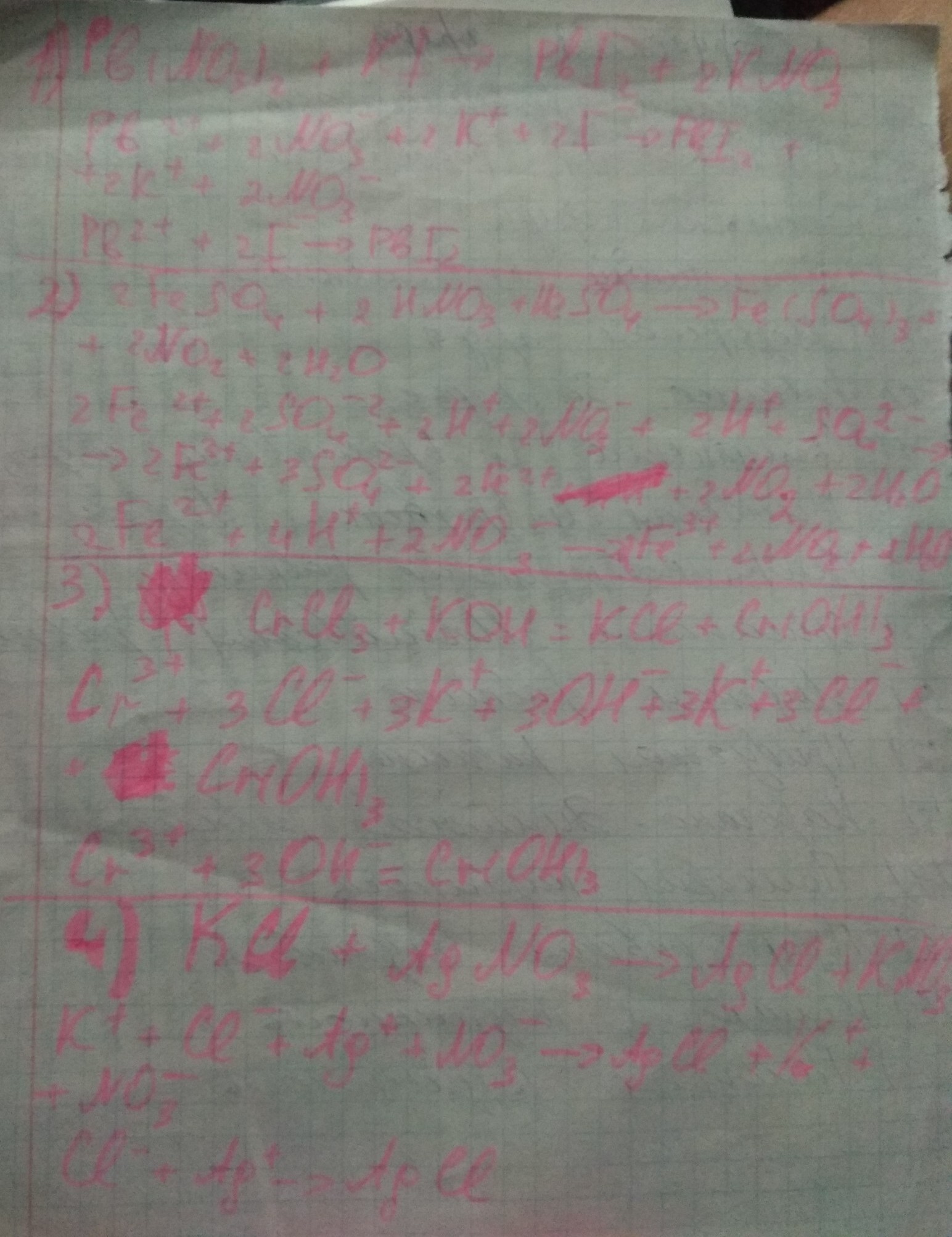 Между какими парами веществ, возможно химическое взаимодействие и почему? Напишите молекулярное, полное и краткое ионное уравнения возможных реакцийKI и Pb(NO3)2; FeSO4 и KNO3; Cr(OH)3 и KOH; AgNO3 и KCl .