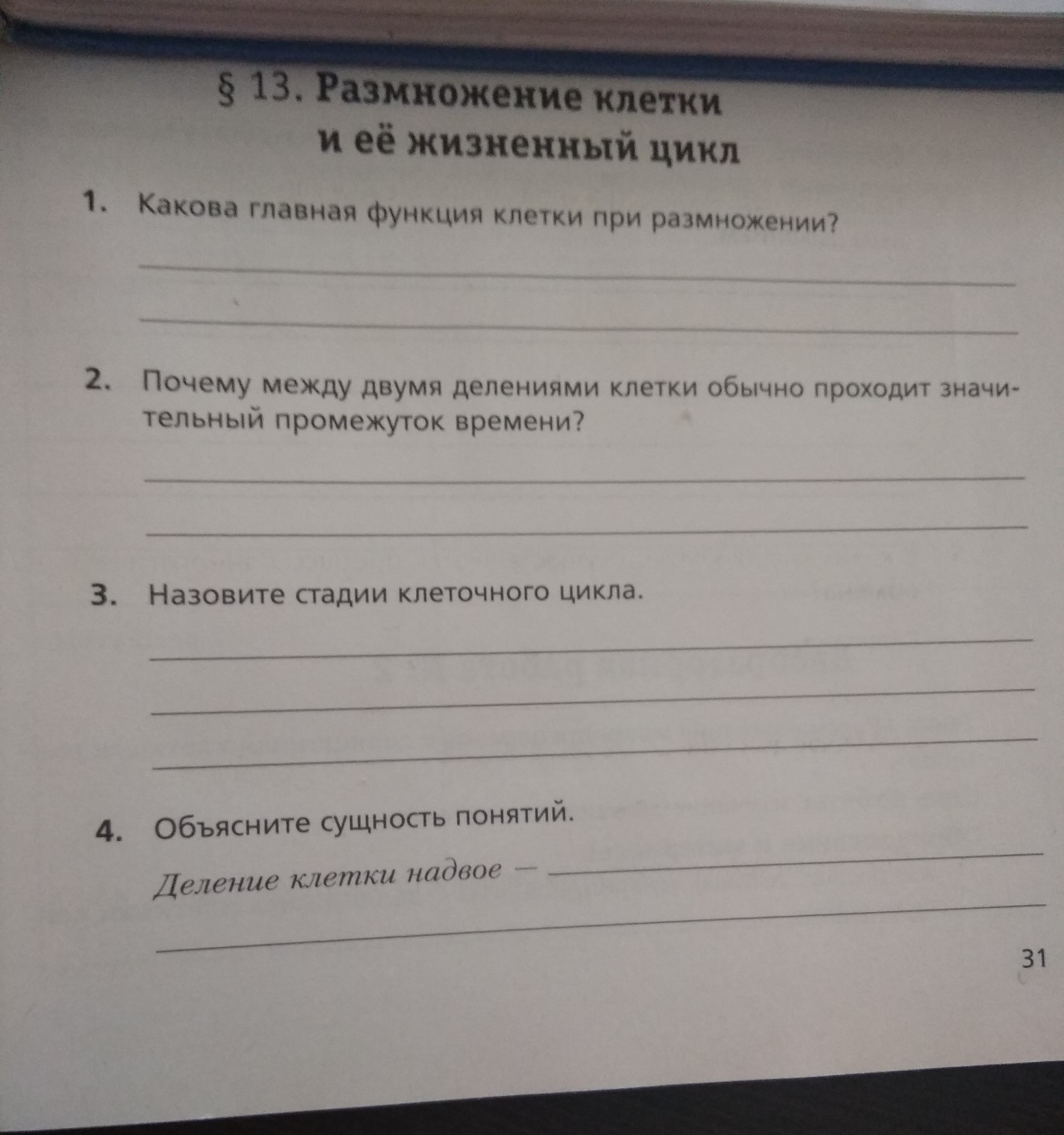 Главная функция клетки, при размножении, заключается в репликации ДНК и формировании уникальных наборов генетической информации в результате митоза или мейоза. Деление клетки проходит во время, так называемого, клеточного цикла, который состоит из нескольких фаз. В последней фазе дочерняя клетка отделяется от материнской. Так же при размножении важная функция клетки-контролировать правильность считывания и подбора генетической информации.