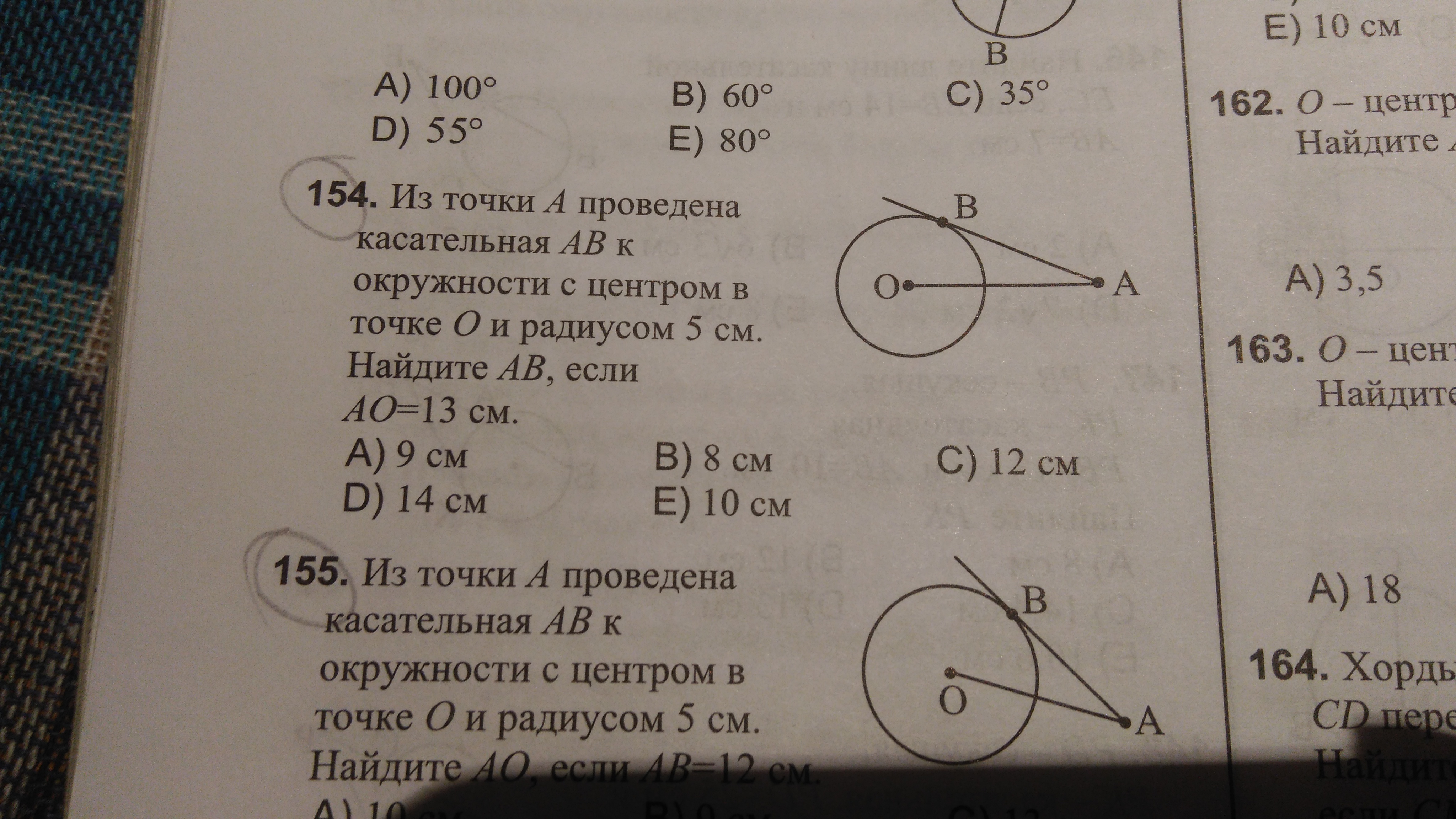Радиус, проведенный к касательной, ей перпендикулярен. Потому образовывается прямоугольный треугольник АОВ, в котором известны катет ОВ = 5 см и гипотенуза АО = 13 см. Потому по теореме Пифагора катет см