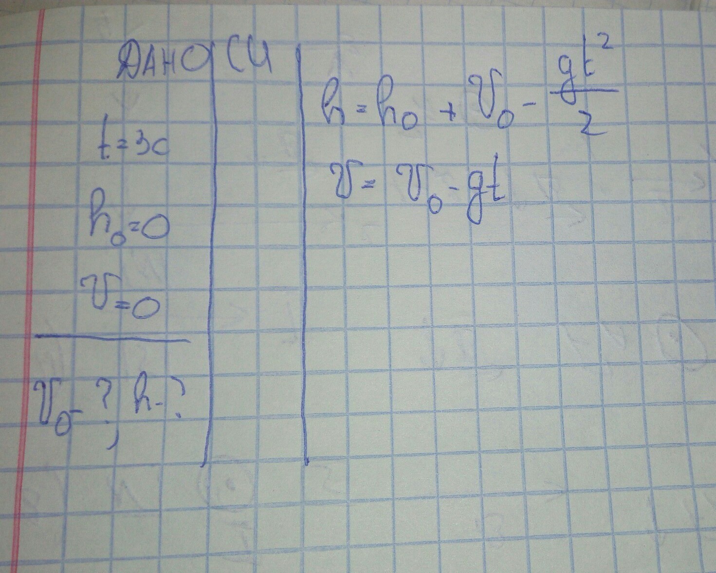 h=(h0+V0×t) - ( (gt²) /2)