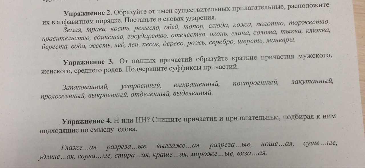 3. Запакован, запакована, запаковано, устроен, устроена, устроено, выкрашен, выкрашена, выкрашено, построен, построена, построено, закутан, закутана, закутано, проложен, проложена, проложено, выкроен, выкроен, выкроено, отделен, отделена, отделено, выделен, выделена, выделено.