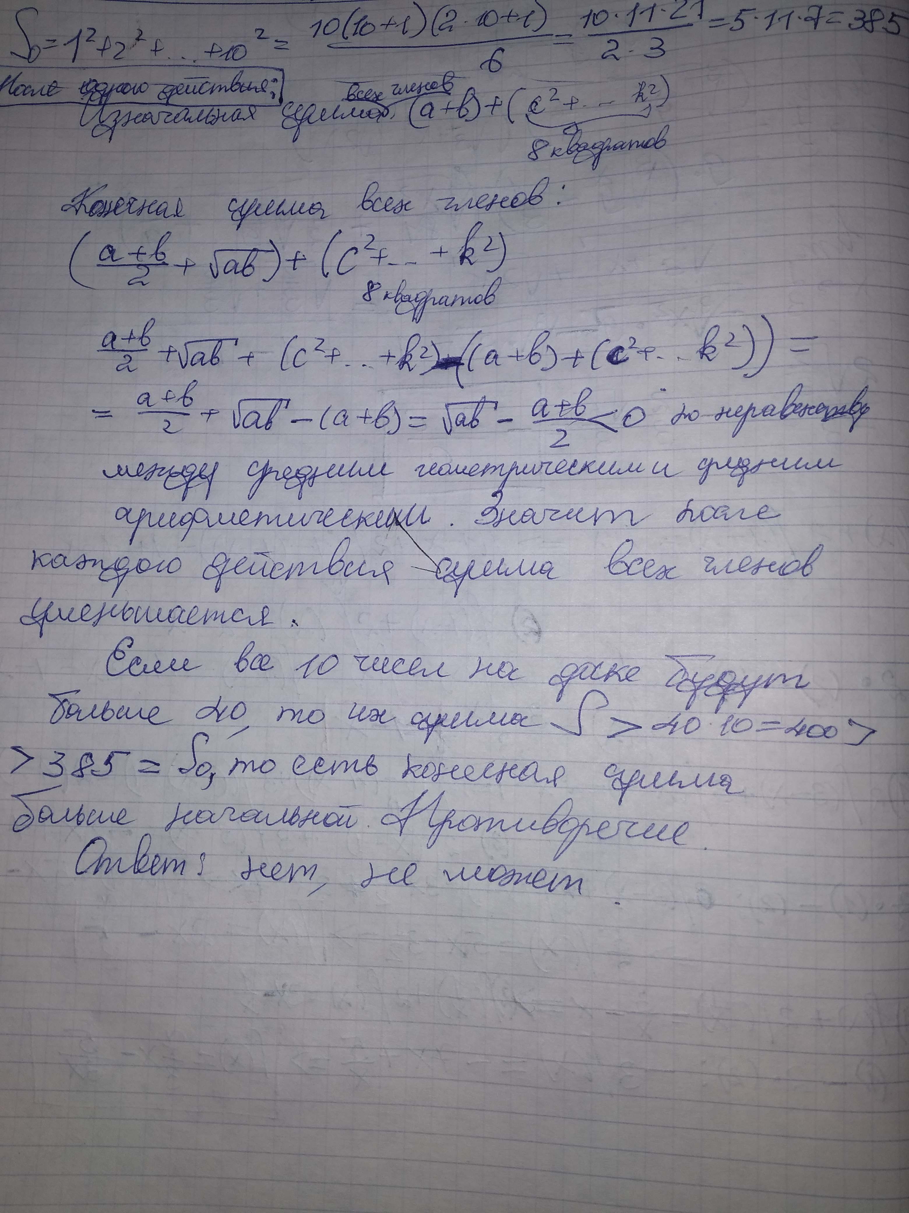 . Может ли получиться так что в результате нескольких операций все записанные на доске числа будут больше 40?