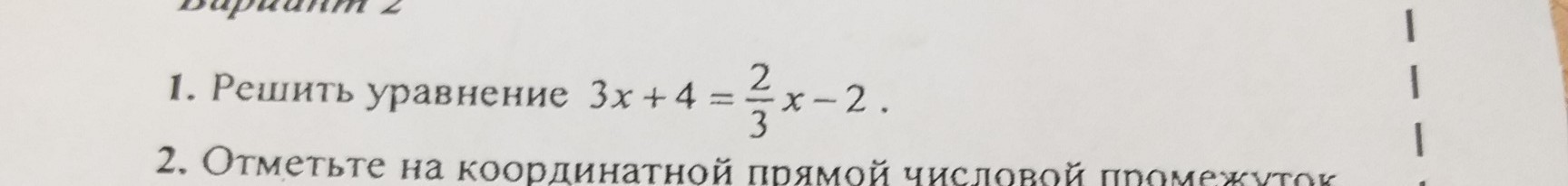 3x-2/3x= -2-4; 2 1/3x= -6; x=(-6):2 1/3= -18/7= -2 4/7. Ответ: x= -2 4/7.