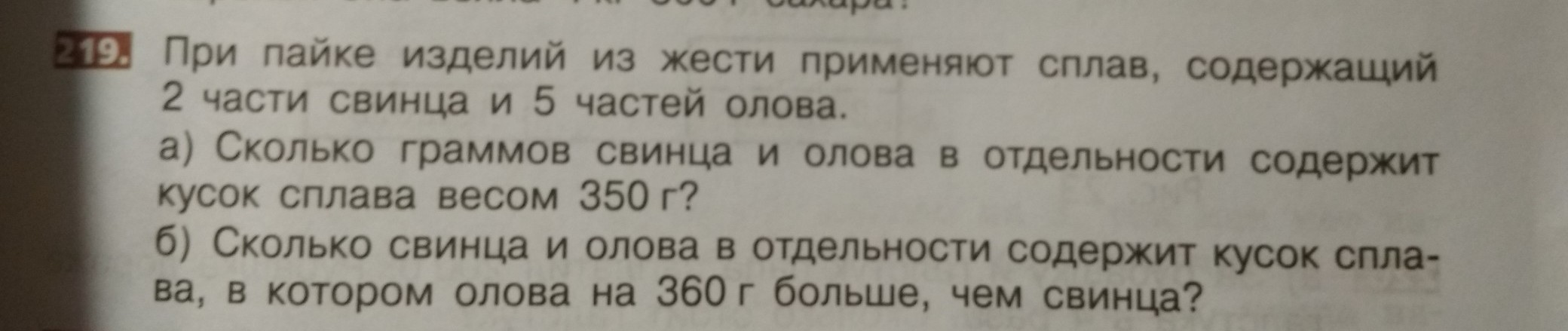Олово: 5 частей от общ. значит 50 * 5 = 250 г. (или 350 - 100)