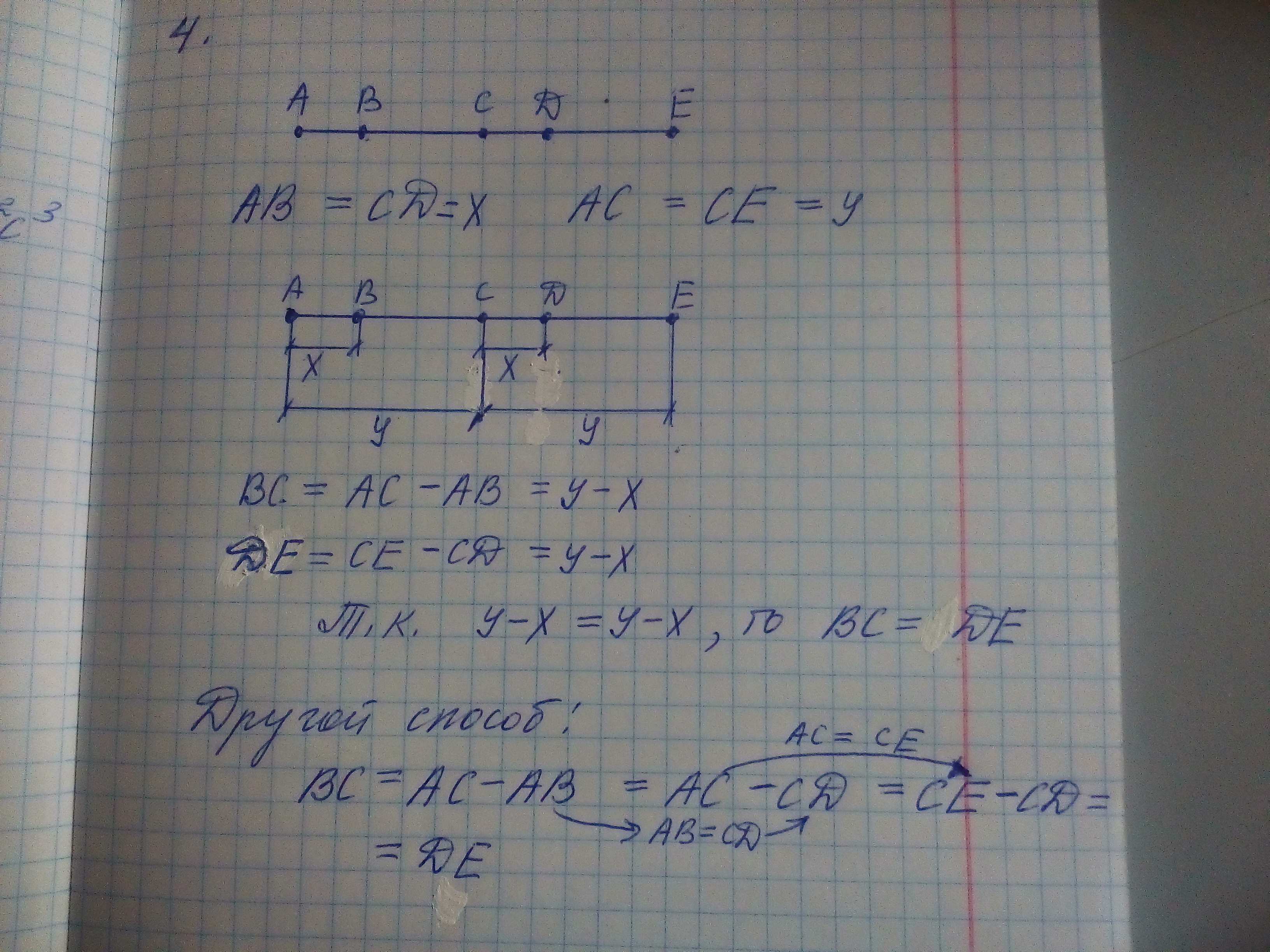 ПОМОГИТЕ НЕ ШАРЮ С ОБъЯСНЕНИЕМ На рисунке 265 AB=CD,AC=CE.Докажите что BC=DE ВАРИАНТ 1 ЗАДАНИЕ 4
