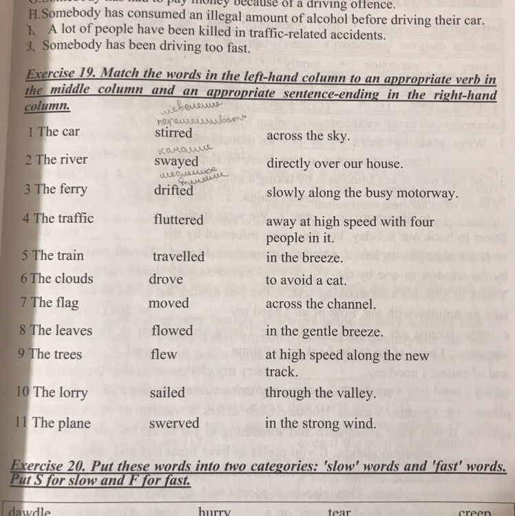 (?) 9. The trees fluttered in the breeze. (я не знаю, могут ли trees flutter, так как даже примеров в интернете я не нашла, но оно единственное, что остается, поэтому либо это так, либо я накосячила где-то еще)