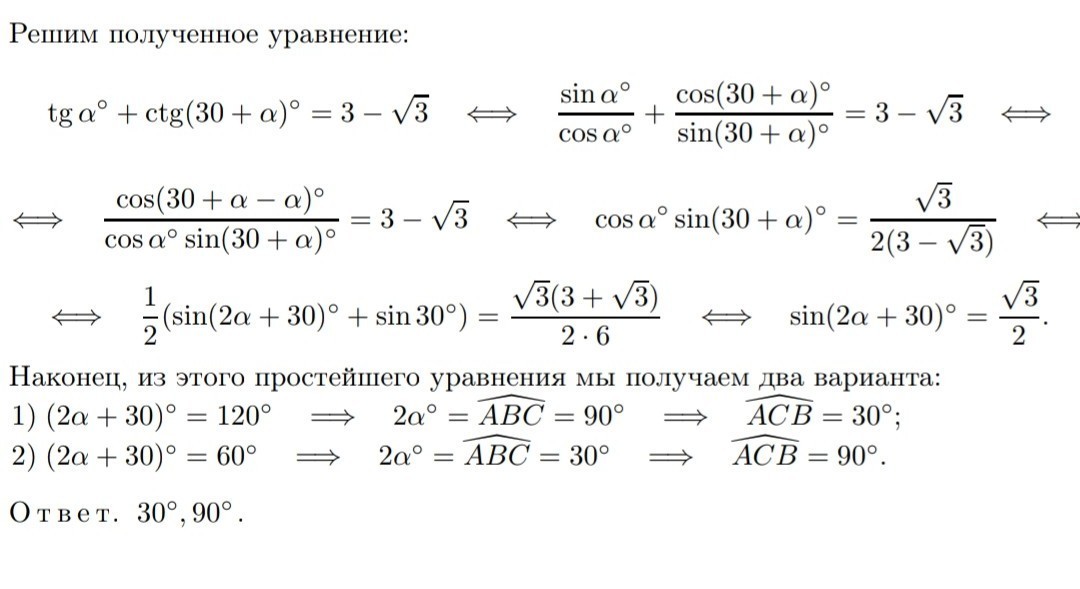 (sina*sin(30+a)+cosa*cos(30+a))/cosacos(30+a)