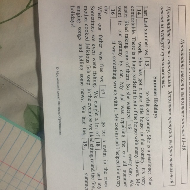 прочитайте Текст с пропусками заполните пропуски выбрав правильный ответ из четырёх предложенных