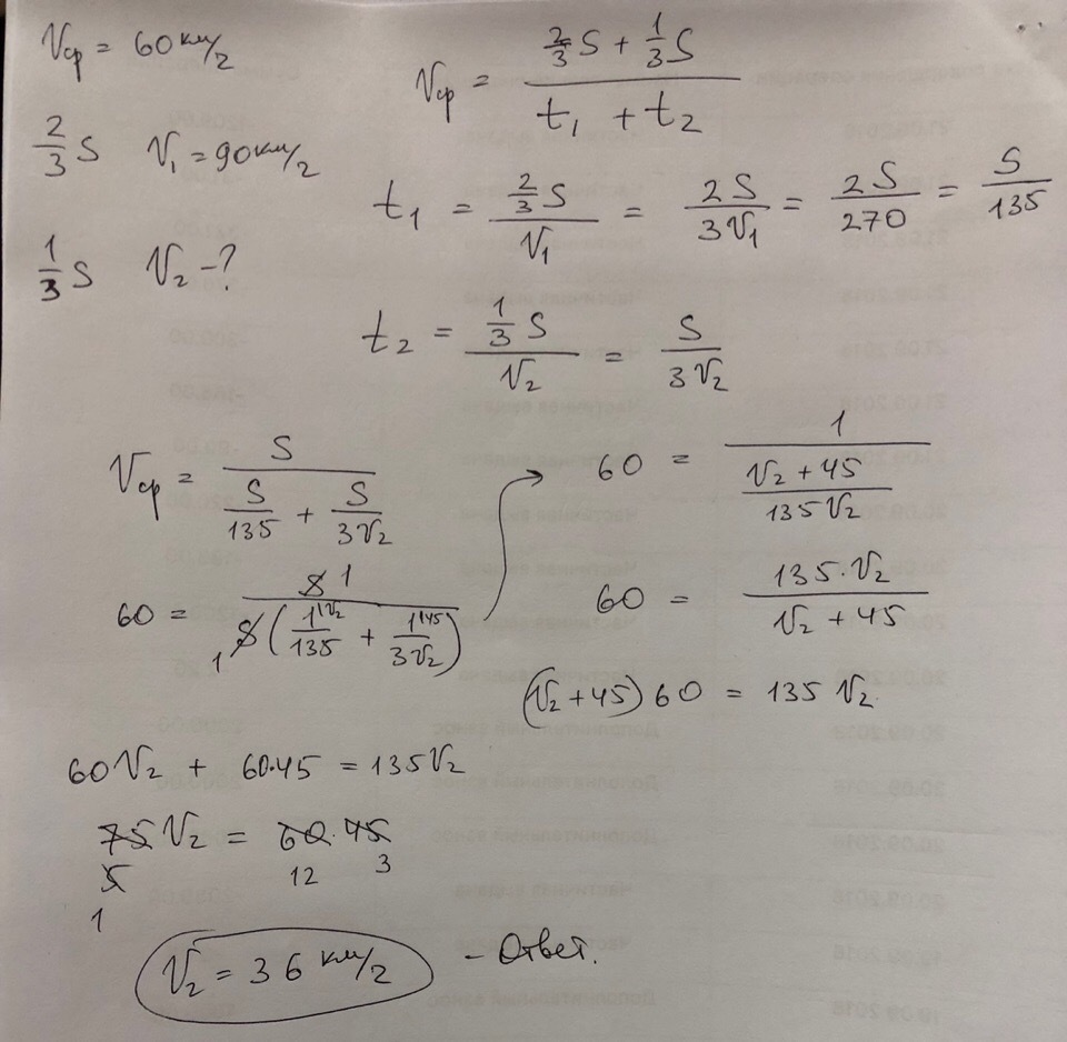 Средняя скорость поезда 60 км/ч. 2/3 пути поезд проехал со скорость 90 км/ч. Определите скорость на остальном пути.