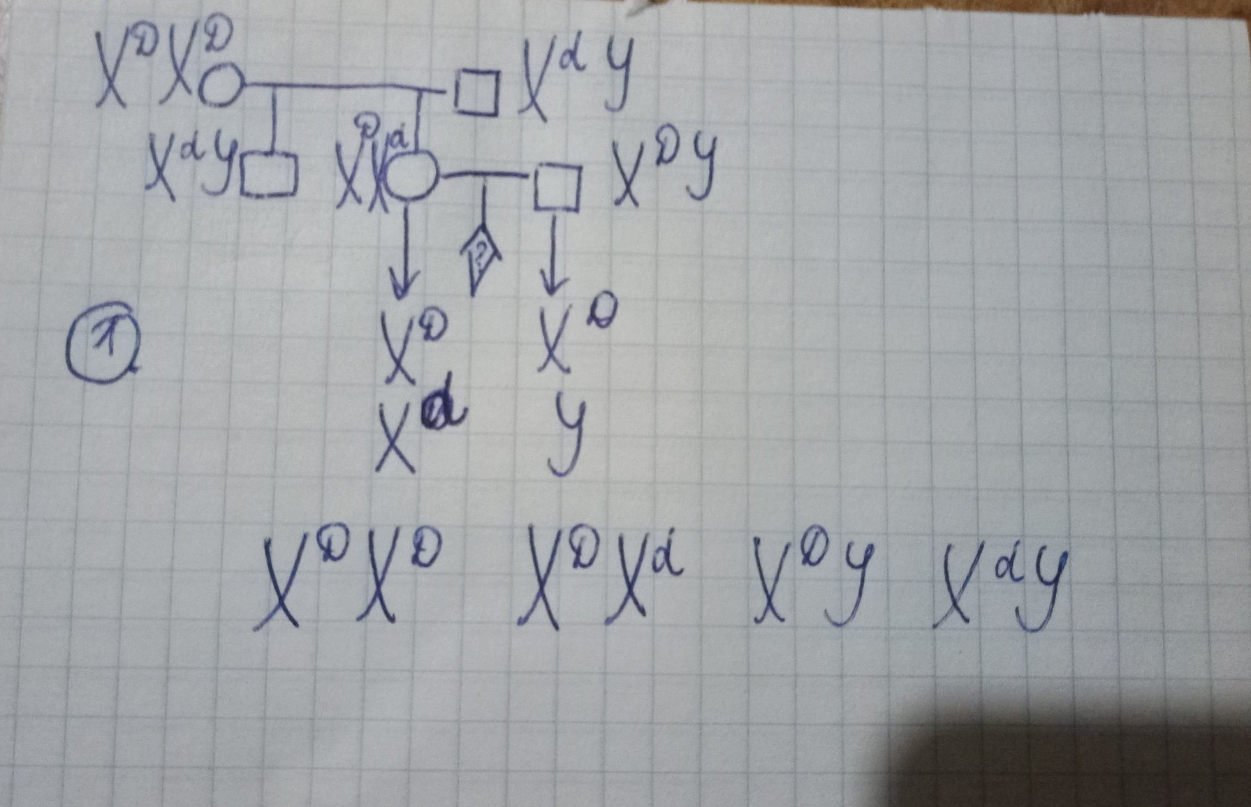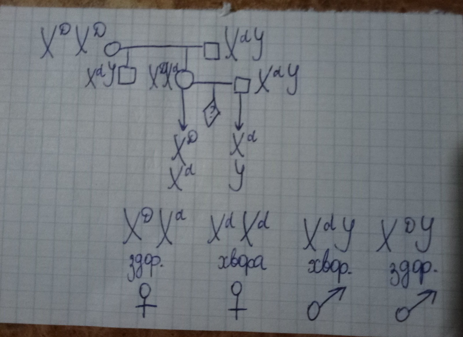 мати брата та сестри має генотип XDXD, їх батько ХdY. Брат - такий самий як і батько, сестра ХDХd.